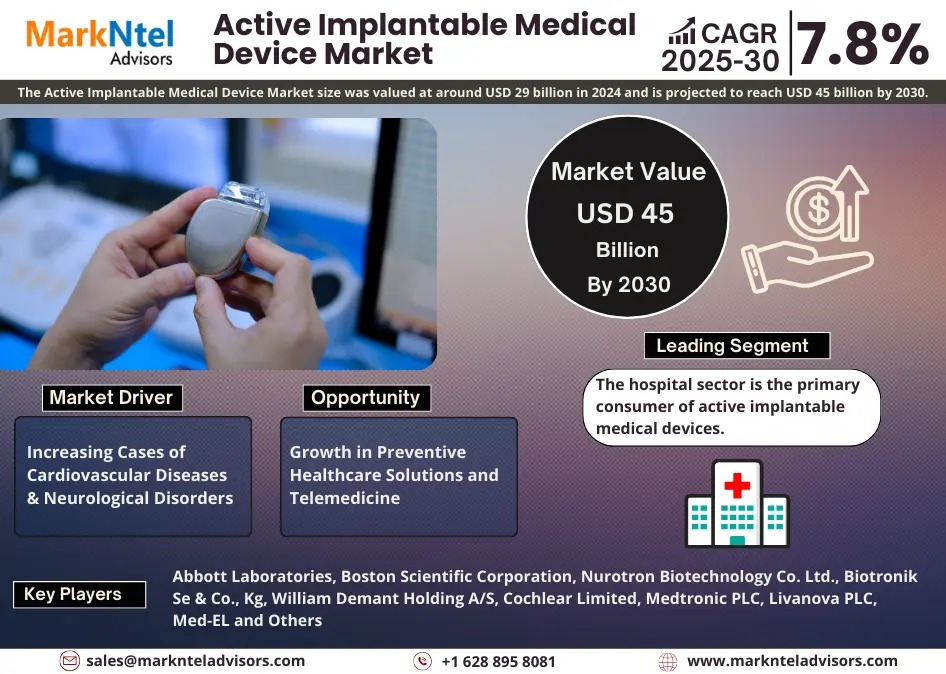 MarkNtel Advisors has unveiled its latest research report on the Active Implantable Medical Device Market, providing an in-depth analysis of market dynamics, growth prospects, and competitive landscape. This report serves as a valuable resource for stakeholders aiming to capitalize on emerging opportunities and navigate potential challenges in the Active Implantable Medical Device industry.