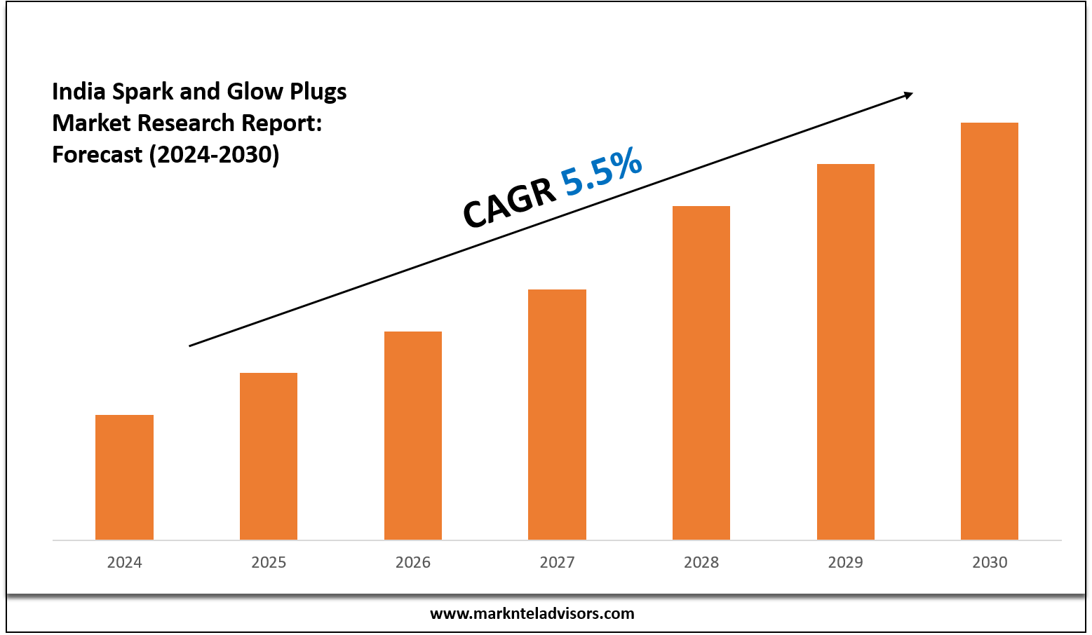 The India Spark & Glow Plugs Market size is estimated to grow at a CAGR of around 5.5% during the forecast period, i.e., 2024-30.