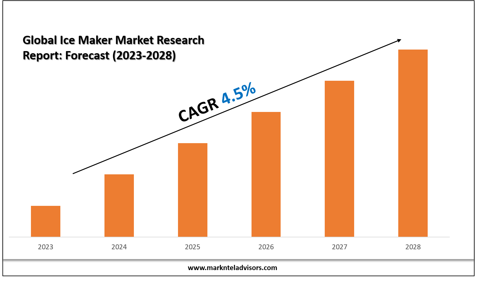 The Global Ice Maker Market is projected to grow at a CAGR of around 4.5% during the forecast period, i.e., 2023-28.