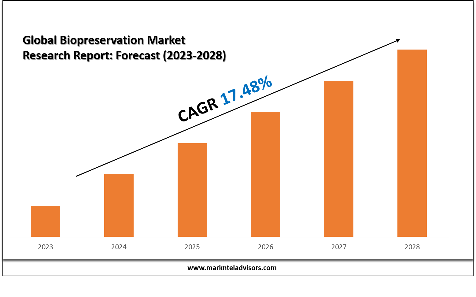 The Global Biopreservation Market is projected to grow at a CAGR of around 17.48% during the forecast period, i.e., 2023-28.