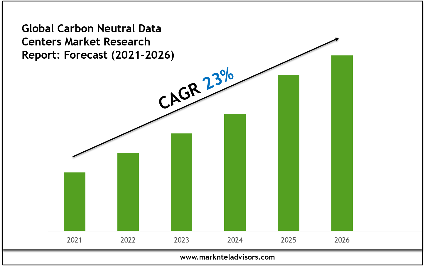 The Global Carbon Neutral Data Center Market Analysis, 2021," the market is likely to grow at a CAGR of around 23% during 2021-26.