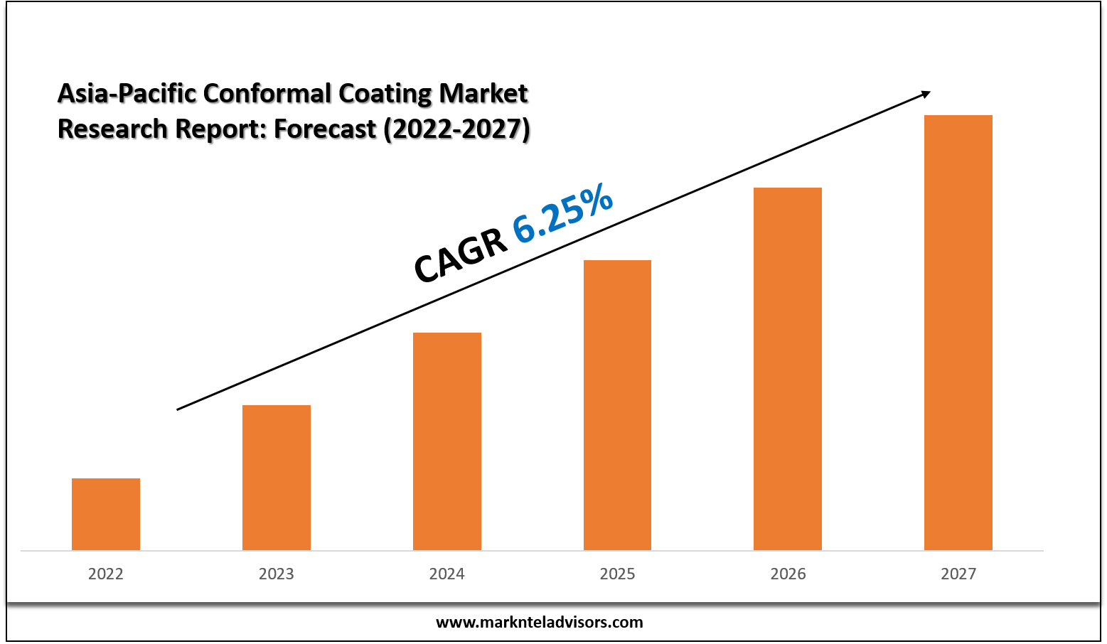 The Asia-Pacific Conformal Coating Market is projected to grow at a CAGR of around 6.25% during the forecast period, 2022-27.
